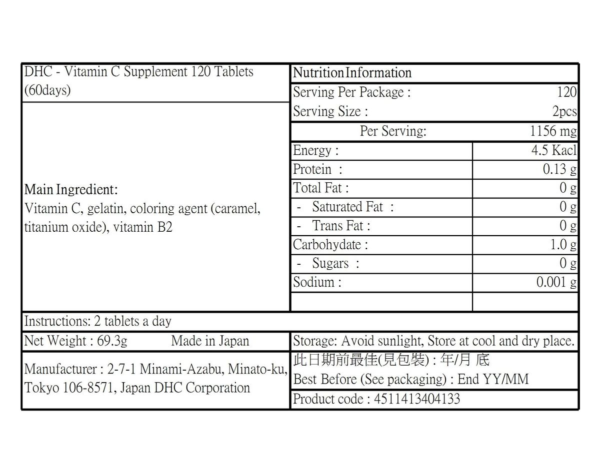 DHC – 維他命C補充食品 60日份(120粒) 【平行進口】